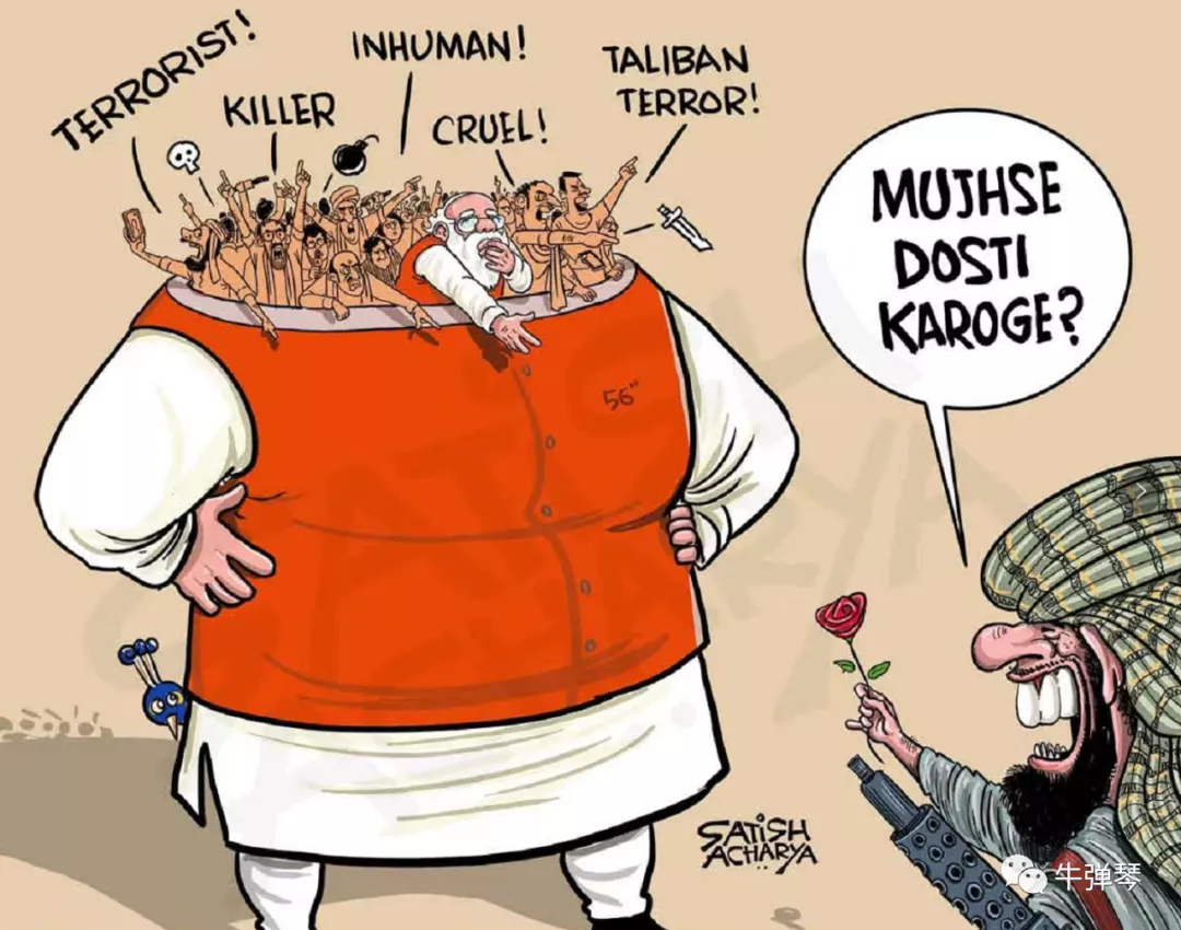 看到一張印度的漫畫,就是最上面的一張。塔利班似乎已改變了心態,特意向印度獻上鮮花,還詢問:你會做我的朋友嗎?