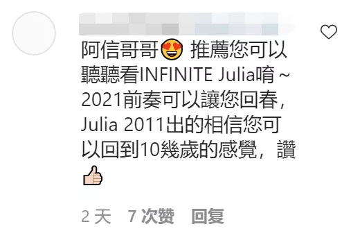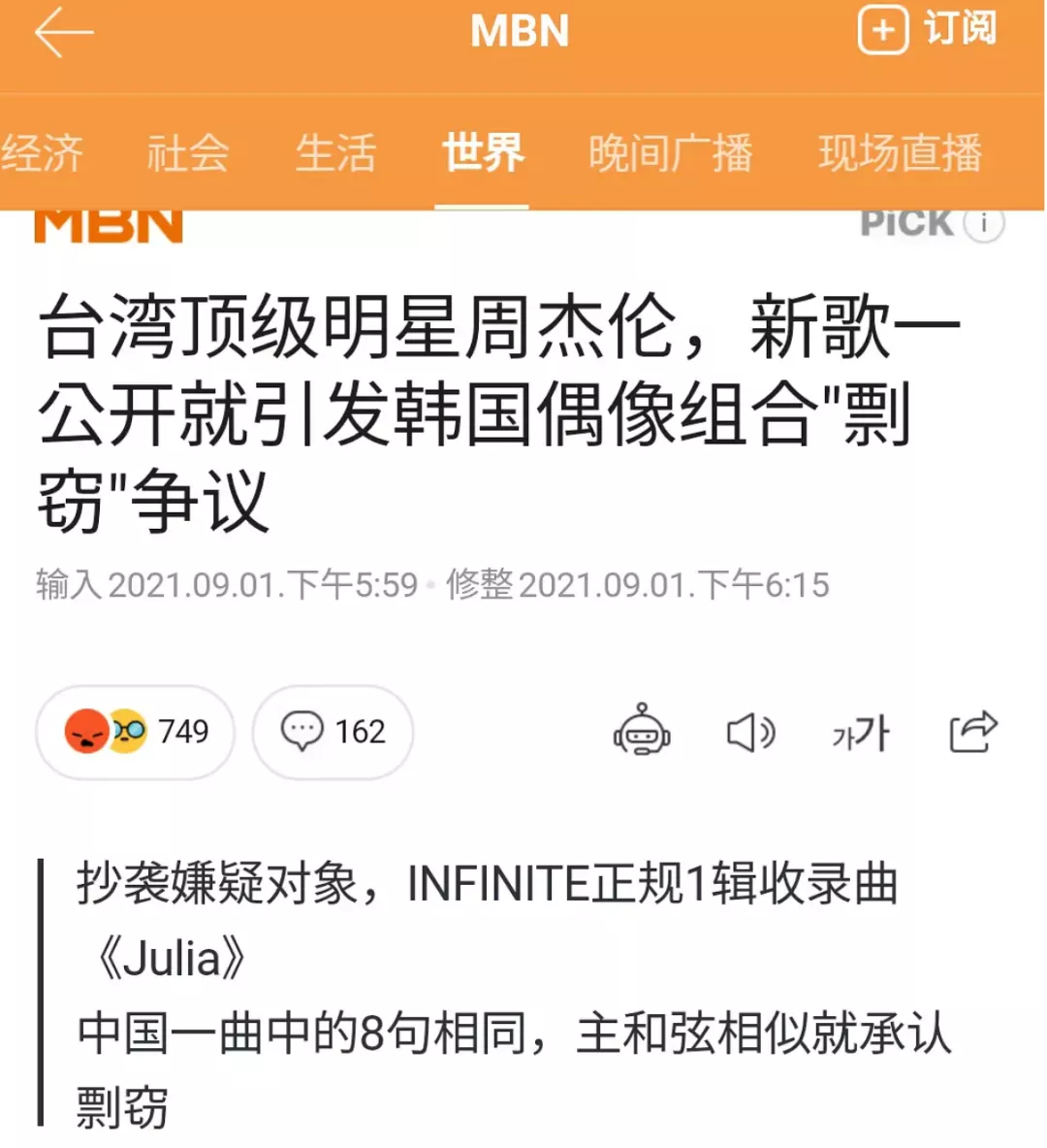 結果就有哈韓的粉絲陰陽怪氣,説老周這段前奏,旋律抄襲某韓團歌曲《Julia》。