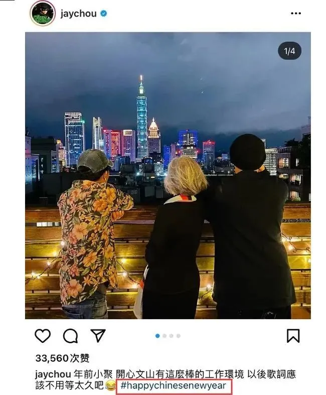 周杰倫緊跟着在ins裏,把中國新年的tag標的明明白白。
