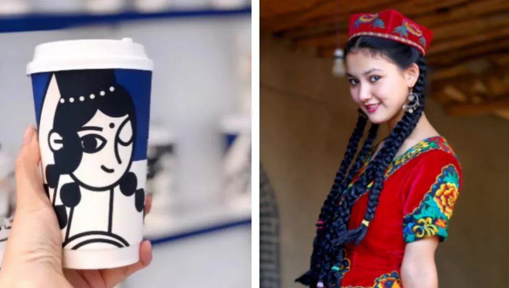 比如西琳姑娘的品牌logo,小花帽、麻花辮、大眼睛、眉心還有一點胭脂,完全就是新疆小姐姐的復刻版。