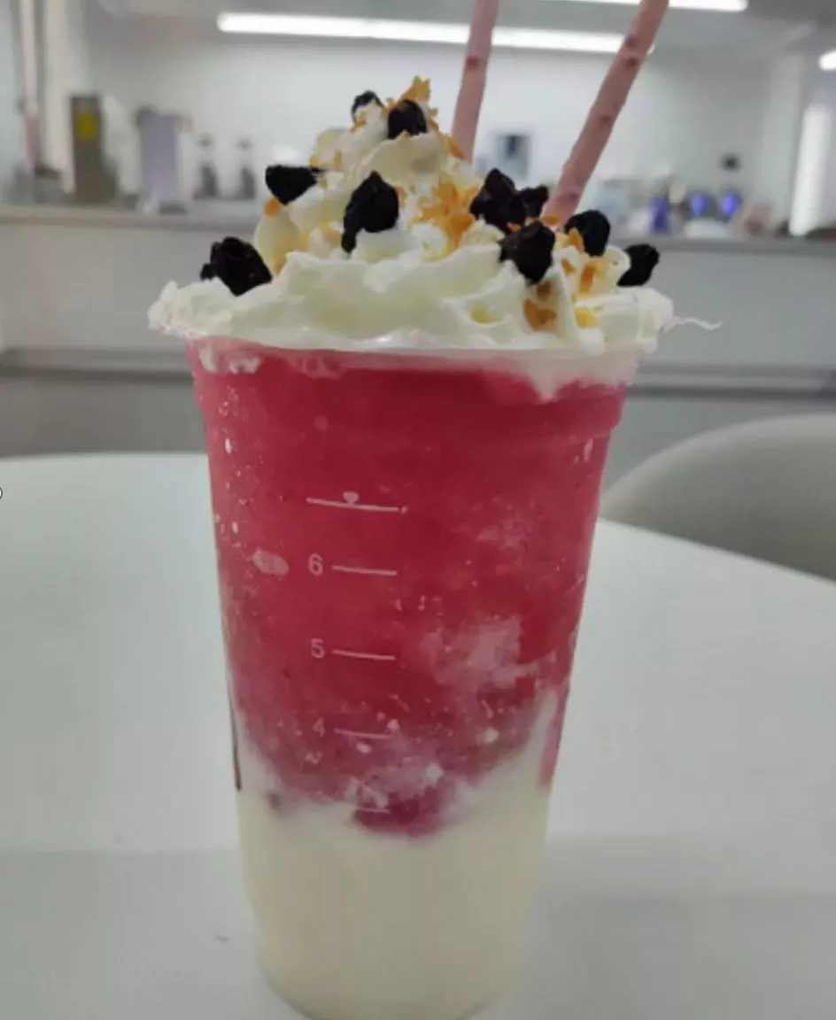 西琳姑娘的飲品,很多都加了冰淇淋,或是老酸奶,因此他們的吸管很特別,一頭是普通圓形,另一頭是呈扁平的勺子形狀,方便消費者挖取冰淇淋或者酸奶。