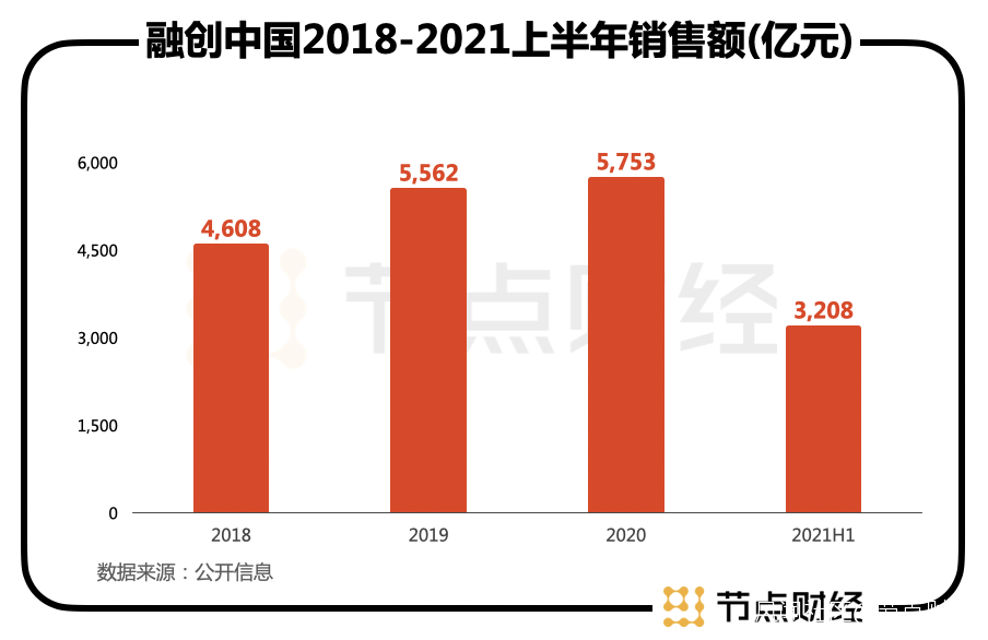 公開信息顯示,融創中國2021年的銷售目標至少為6400億元,按此推算,融創中國上半年已經完成該目標的50%。對比同行的數據,融創中國的這份業績相當亮眼。2018年-2020年,融創年度銷售額分別為4608億元、5562億元、5753億元,3年複合增長率達12%。而根據現有數據來看,融創的銷售額位居行業前四。