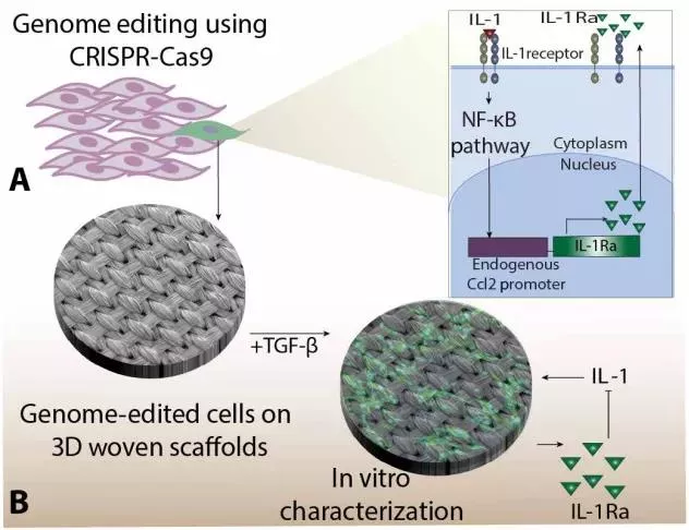 近日,聖路易斯華盛頓大學的研究人員利用合成生物學手段,設計了一種植入式基因工程細胞複合物,其可在炎症因子刺激下分泌抗細胞因子藥物,治療多種慢性病。