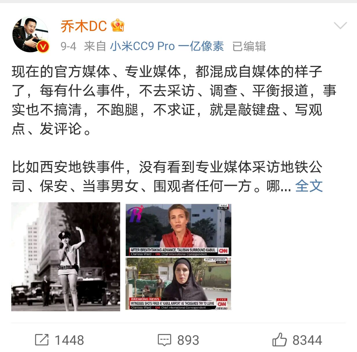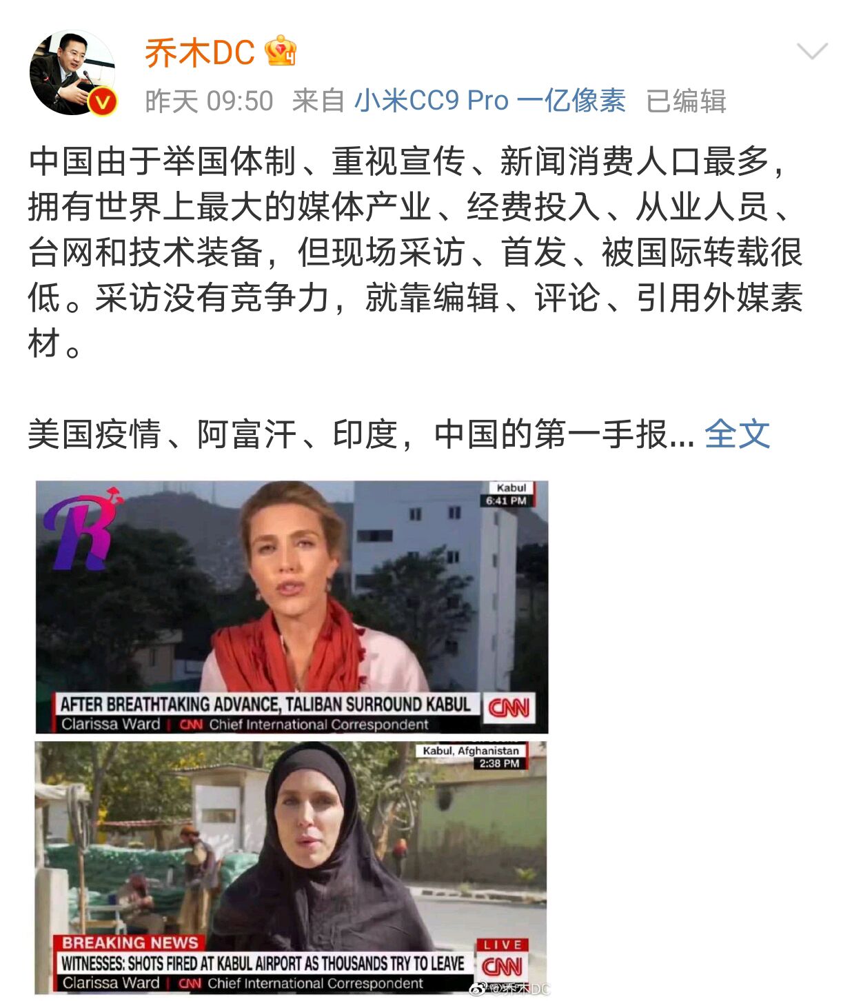 採訪沒有競爭力,就靠編輯、評論、引用外媒素材。美國疫情、阿富汗、印度,中國的第一手報道在哪?國際沒有競爭力,國內呢?西安地鐵也去不了嗎?官媒一是懶,二是傲,窩裏橫。