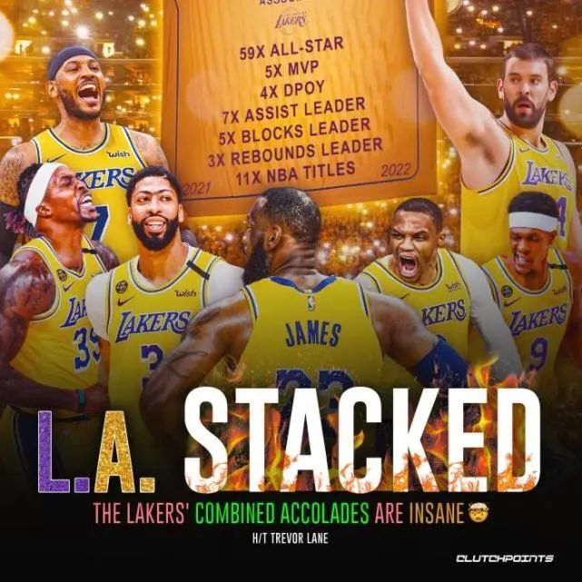 新賽季的湖人陣中,包括小喬丹在內共有8位球員入選過全明星,合計入選60次;