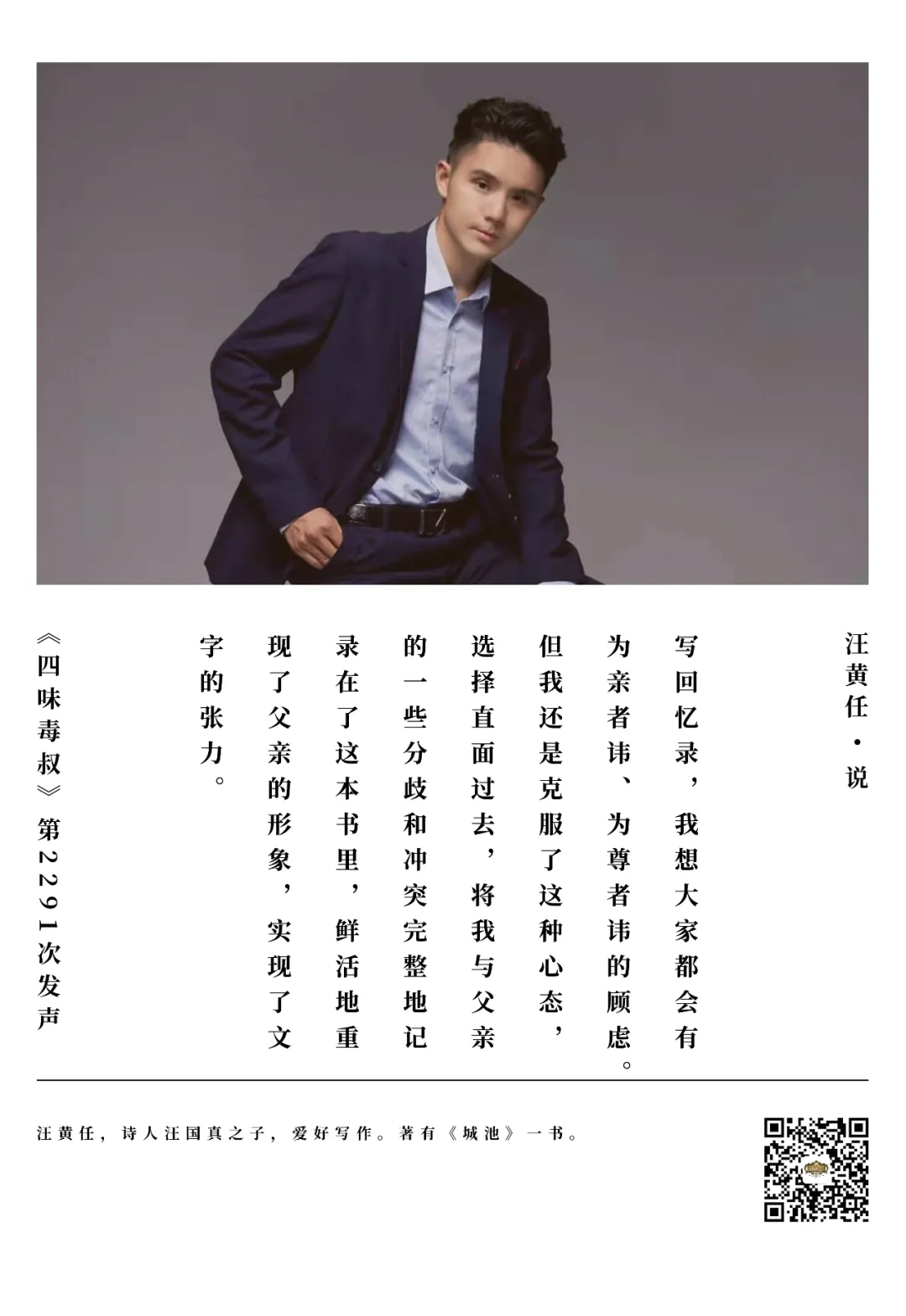 汪國真獨子汪黃任:”憶父書”不迴避矛盾衝突才能做到真實_風聞