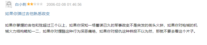 以及男主那句故作深沉的“開槍比彈吉他簡單”更是騷了我一整年,讓我久久回不過神來。
