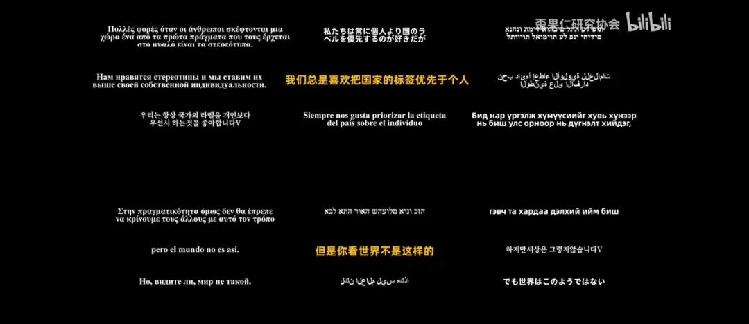 “我們總是喜歡把國家的標籤優先於個人,但是你看,世界不是這樣的。”九種不同國家的語言彙集在一起,念出了這句話,構成了視頻的結尾。