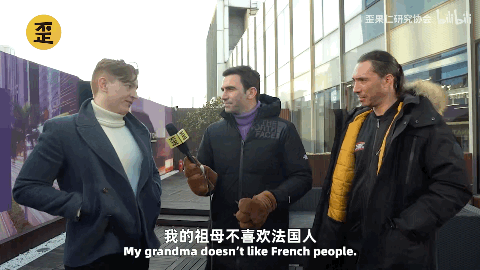 俄羅斯男孩有點靦腆地對着鏡頭説,人們覺得俄羅斯男人暴力,酗酒,但自己其實是個一喝酒就臉紅的“暖男”。英國人和法國人見了面,坦承自己的祖輩非常不喜歡對方,然後大笑,握了握手。採訪快結束的時候,德國人熱情地擁抱了猶太人,拍着對方後背提議:“還是冷,我們進去(室內)吧。”