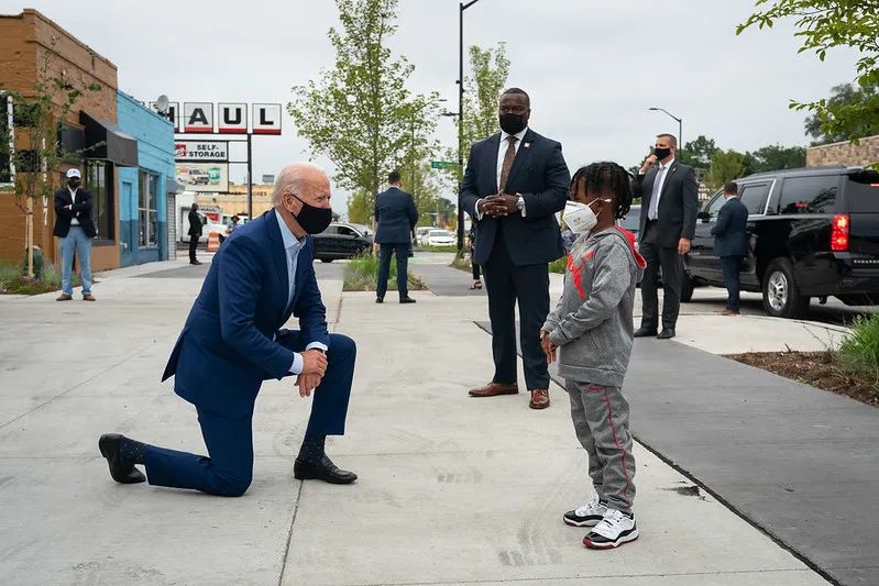 浸淫華盛頓政圈兒多年,拜登養成了自己的遊戲策略,凡話都撿最正確的説,有了政治正確做最大保證,就不怕在具體技術環節顯得有多麼無能。就像當初身份不清不楚的黑人弗洛伊德因警察執法而死後,拜登為了凸顯特朗普在解決種族問題上的所謂失敗,以無聲勝有聲,到處找黑人下跪。不求別的,只要到選舉那天投民主黨的票即可。