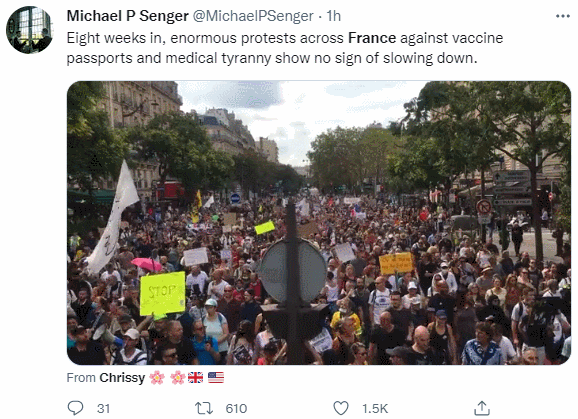 數據爬坡中!英國日增4萬美國18萬!巴黎週末檔爆發40萬人反疫苗護照大遊行!_風聞