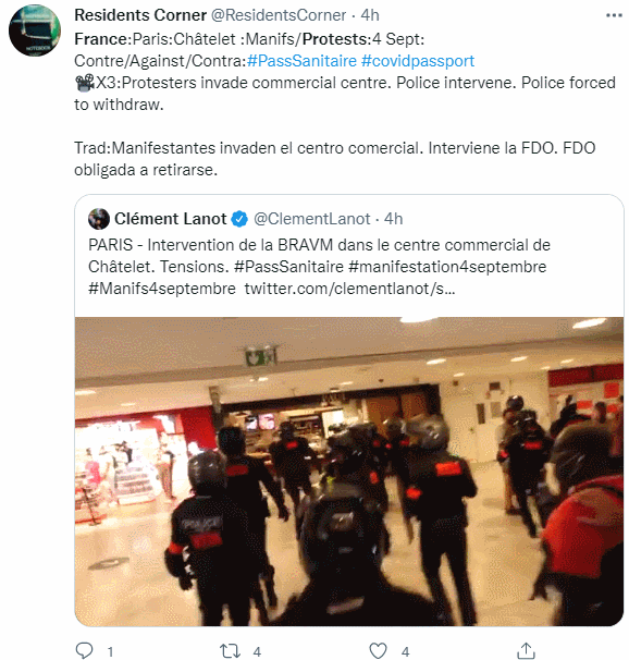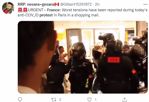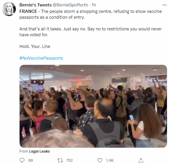 瘋狂的法國人不僅在擠滿街道,還跑進購物商場,聚在一起,高喊口號,拍視頻記錄,抗議疫苗護照。