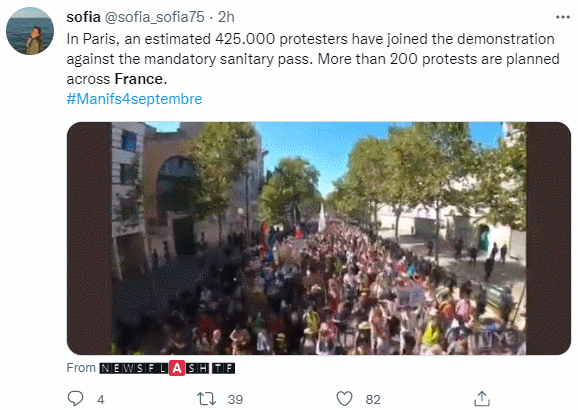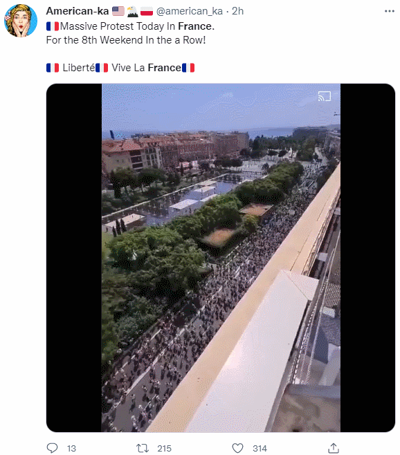 據悉,法國人為了反對該國實施的疫苗護照計劃,已經連續8周舉行大規模抗議遊行,而且一次比一次猛烈。最近一次,就發生在今天9月4日。