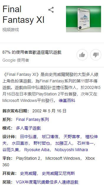 這個系列作品幾乎都是單機 RPG ,但是在 2002 年, Square 還沒和 Enix 合併,當時 Square Soft 決定把《 最終幻想 XI 》做成網遊,這是一種嘗試,沒想到它取得了巨大的成功。