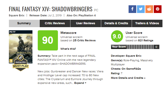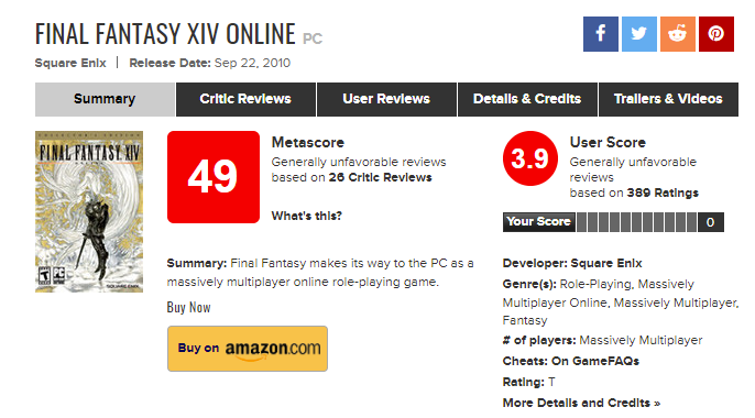 metacritc , Final Fantasy XIV Online