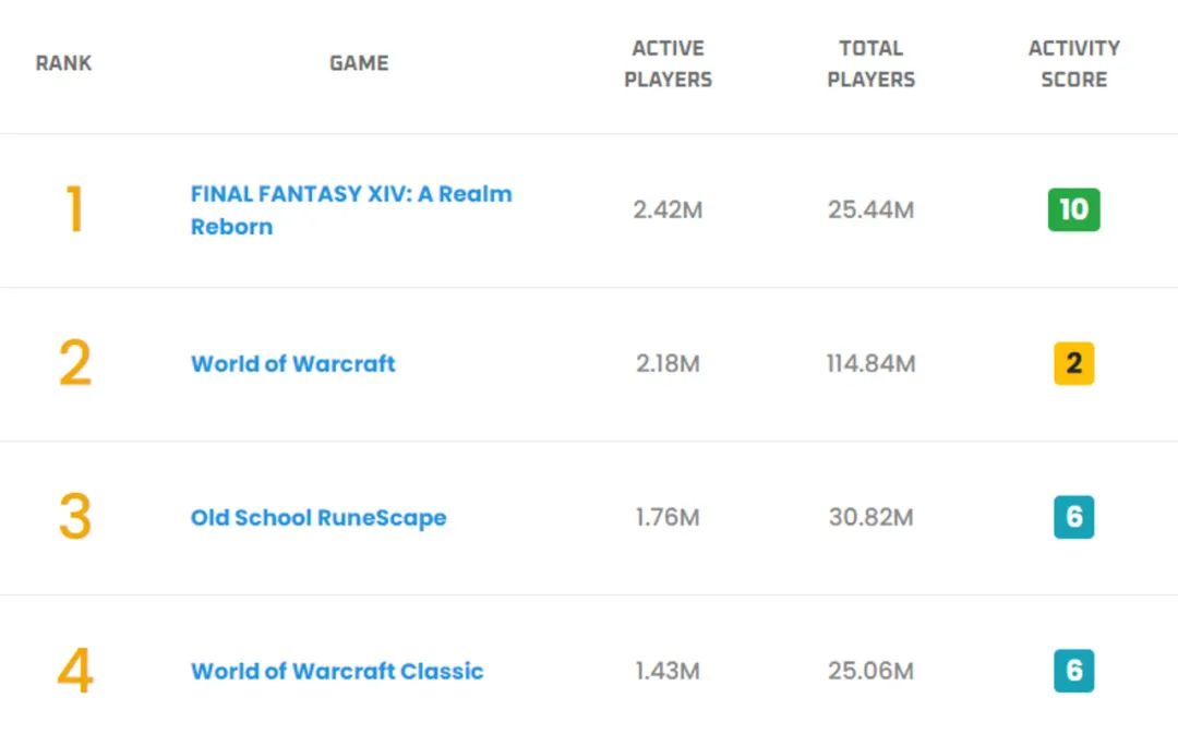 相較之下, FF14 幾年如一日的穩定運營,新玩家數量增長和老玩家留存都很不錯,甚至最近許多 “ 魔獸難民 ” 都跑去了 FF14 ,導致國際服的人數暴增,月活玩家人數也超過了《 魔獸世界 》。