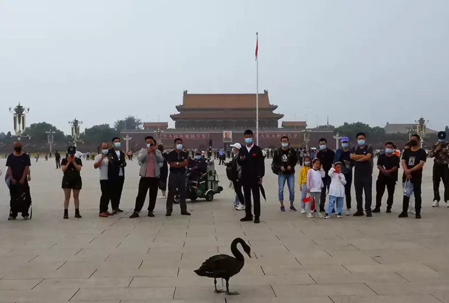 7. 升旗儀式後 黑天鵝降落天安門廣場