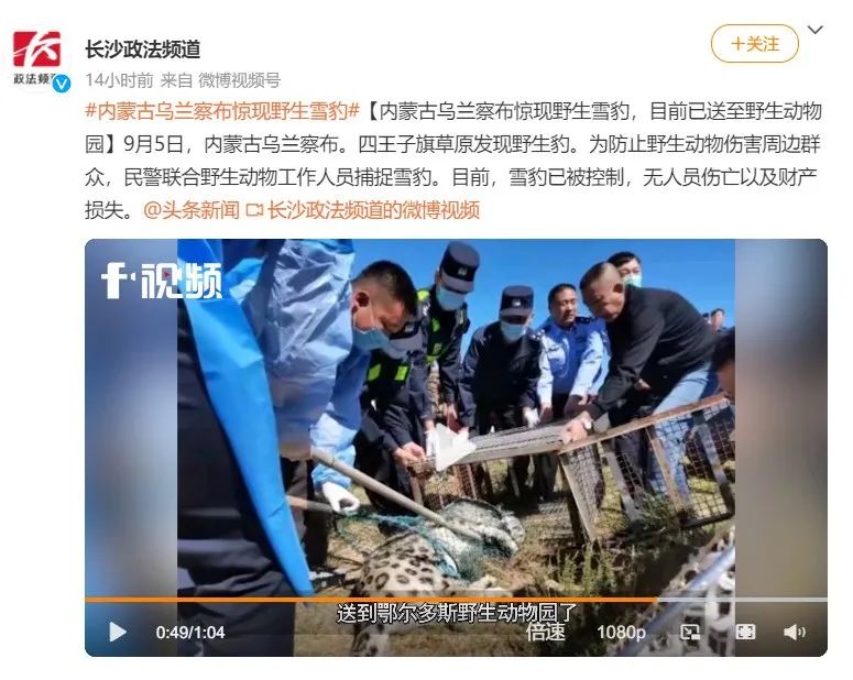 從網絡新聞獲悉,這隻雪豹已被抓捕並送至鄂爾多斯野生動物園 圖源網絡