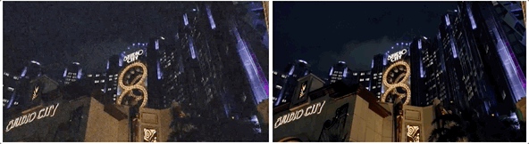 從實際效果來看,同一部手機,搭載V1芯片拍攝的夜景視頻,在對比度還是流暢度(插幀效果)上都要更好: