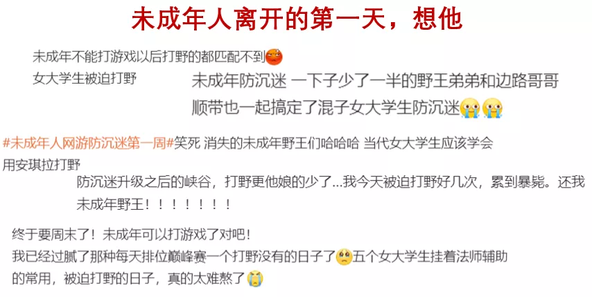 而且未成年人被防出去的日子裏,成年人也並不好過。他們打遊戲匹配要等位、法師佔全隊、含淚望去全是老一輩