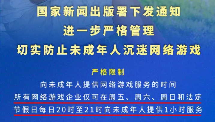 最近未成年網遊防沉迷新規大家都知道吧?新規要求,所有網遊企業只能在週五、週六、週日和法定節假日,每天晚上8點-9點向未成年人提供1小時遊戲服務,管控力度前所未見!