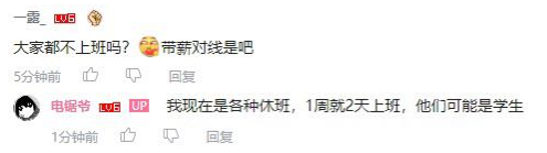 3.有人對up主身為律師還一週七天不停直播以及在網上對線表示質疑,up回應稱自己每週只用上一兩天班,這些跟我對線的都是學生。