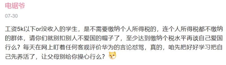 4.up主認為工資沒有五千or沒有收入的學生,是不用繳税的,連税都繳不起的人也好意思説自己愛國麼,還是回去多讀讀書吧。