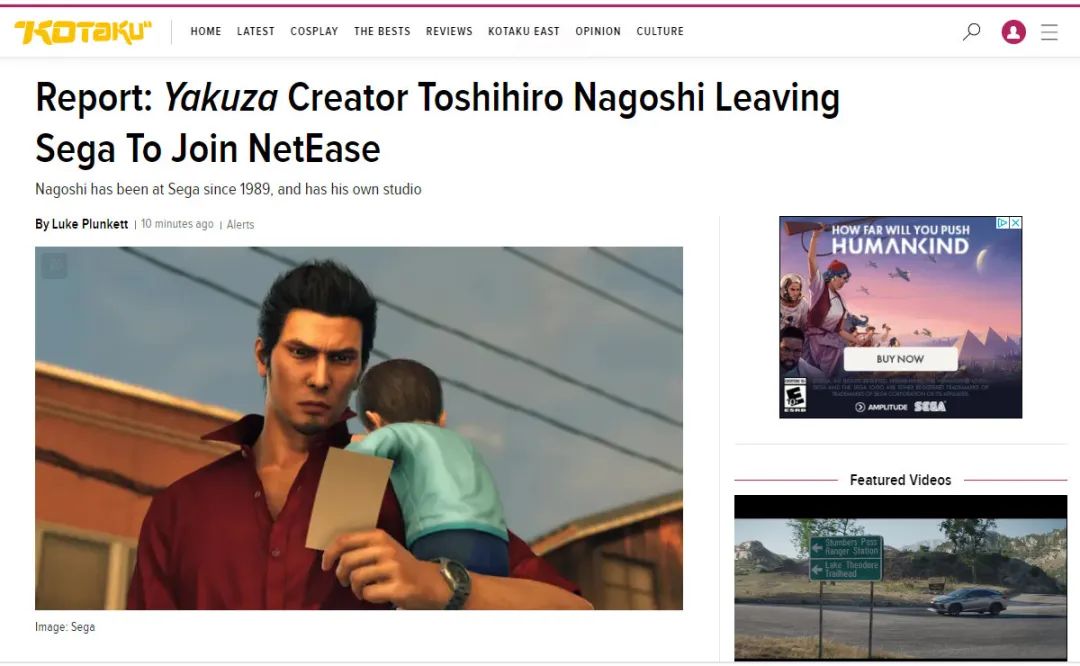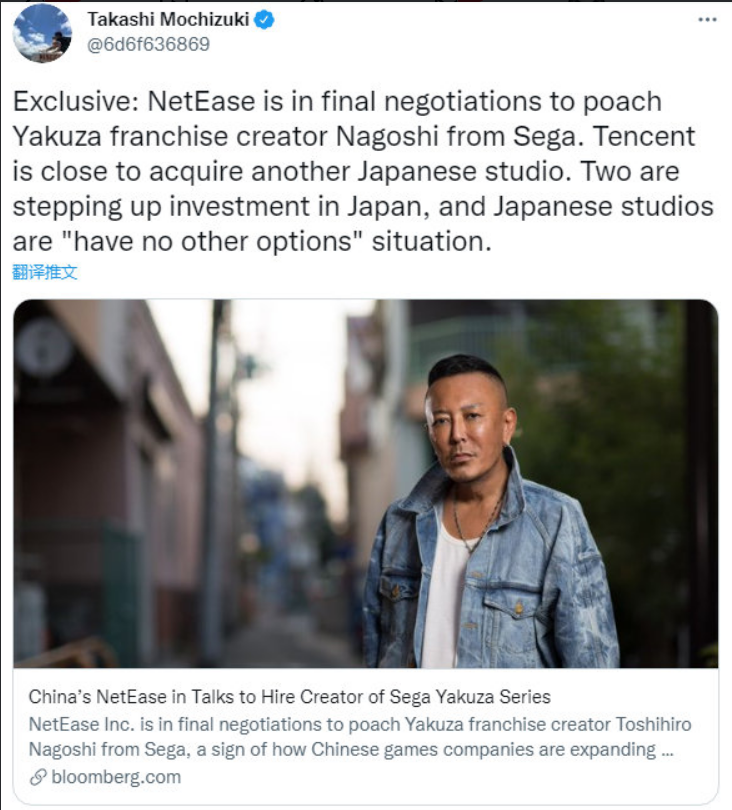近日外媒爆料,遊戲《如龍》系列製作人名越稔洋正被網易“挖角”,已到最終協商階段。消息來自彭博社的業內知名記者望月崇,按其説法,名越稔洋將組建自己的新團隊開發遊戲,但還沒有簽訂合同,也未敲定職位。