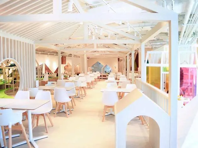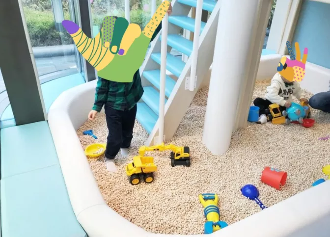 據説這家親子餐廳挺出名,像個遊樂園,有玩過家家的區域,有滑梯,有各種小車和不倒翁,還可以換裝拍照。