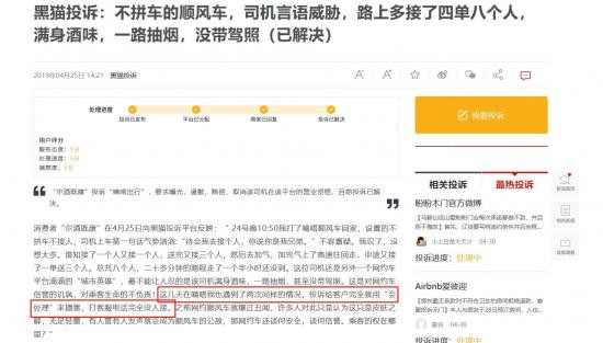 事實上,近年來關於順風車行業的負面新聞並不少,比如司機中途修改車費、中途沒經過乘客同意捎帶其它人等等,司機跟乘客之間的糾紛投訴事件,屢屢發生。