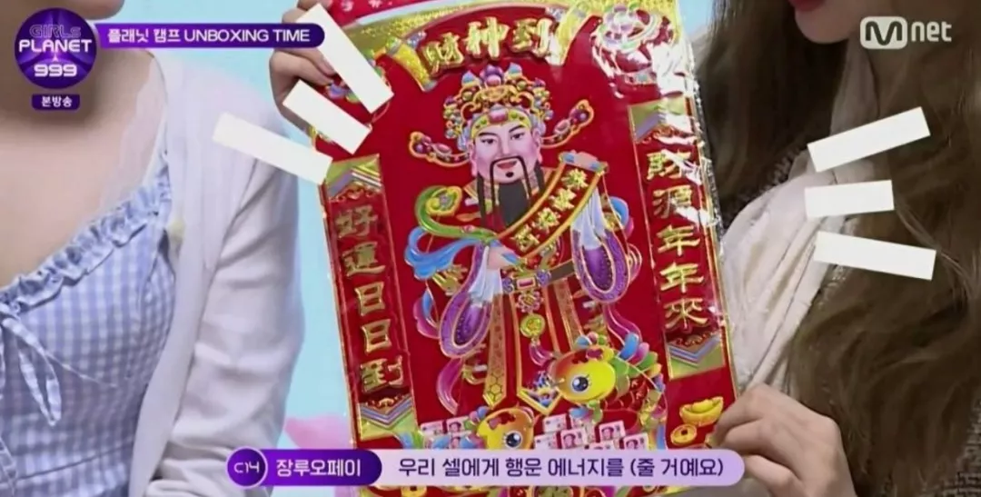 比如,最近韓國有個女團選秀,其中有位中國妹子,真的很會整活兒,她直接把財神爺帶去了。