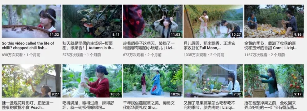 田園生活讓她的海外播放量500萬起步,幾乎可以和油管最大的網紅相抗衡。