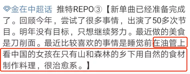 金在中都説睡前最愛看李子柒做飯的視頻,滿滿都是治癒感。