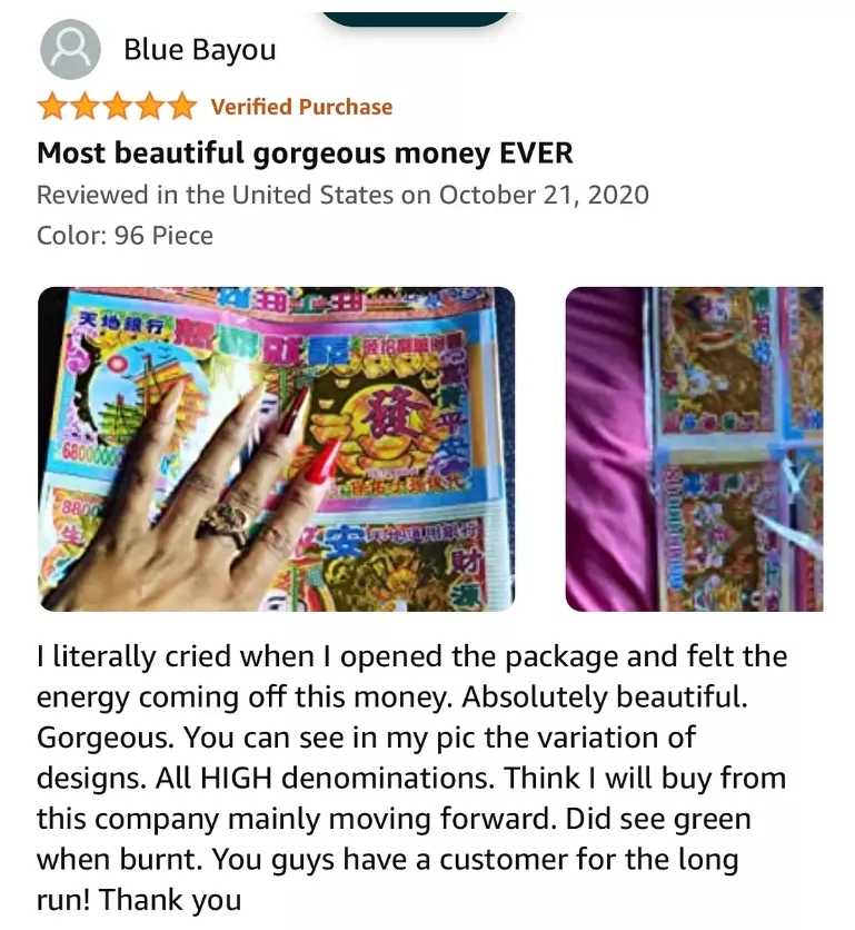 一打開包裝我就哭了,感受到來自冥幣的能量,以後俺就是你們的長期客户了。
