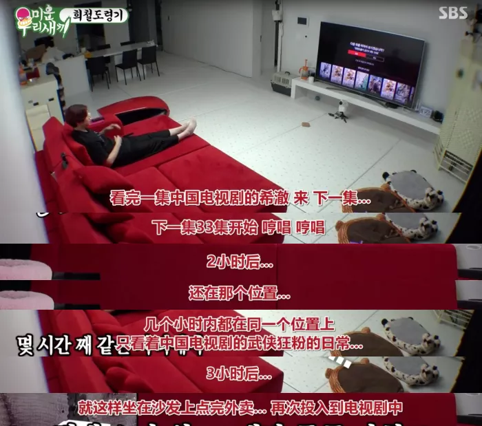 金希澈一動不動沉迷劇中,忘記時間,忘記吃飯。