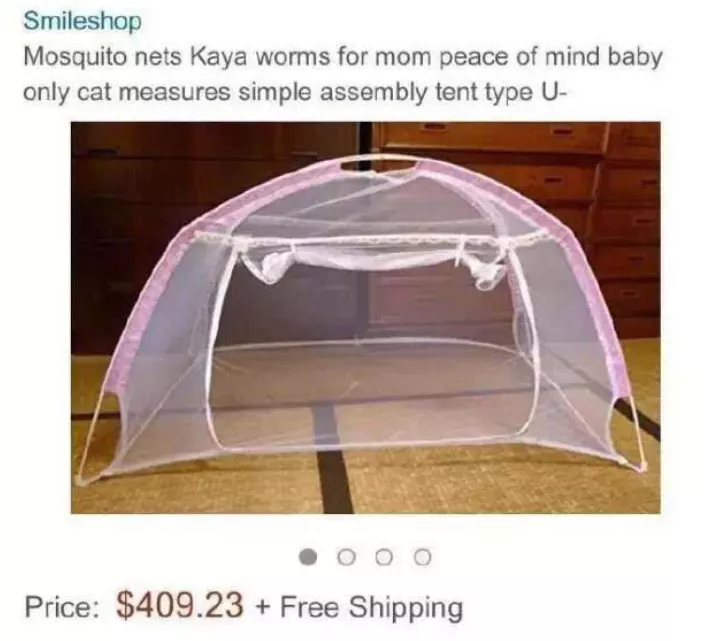 國外購物網站上也賣起了蚊帳,就是照片拍的不像陽間的玩意,價格還高達400多美元。