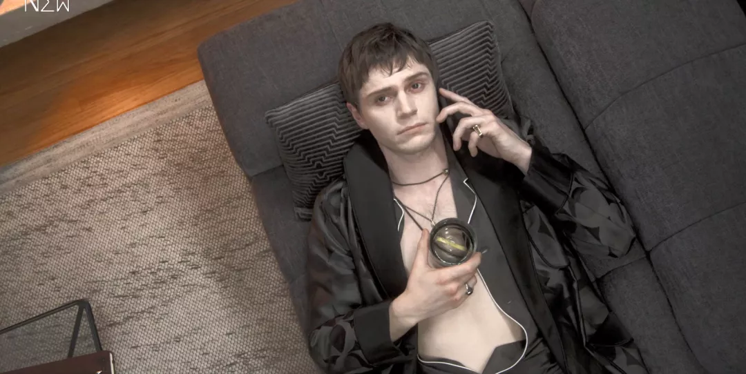 沒了之前酒吧裏的紅色燈光,男作家病態的慘白膚色顯露無遺。