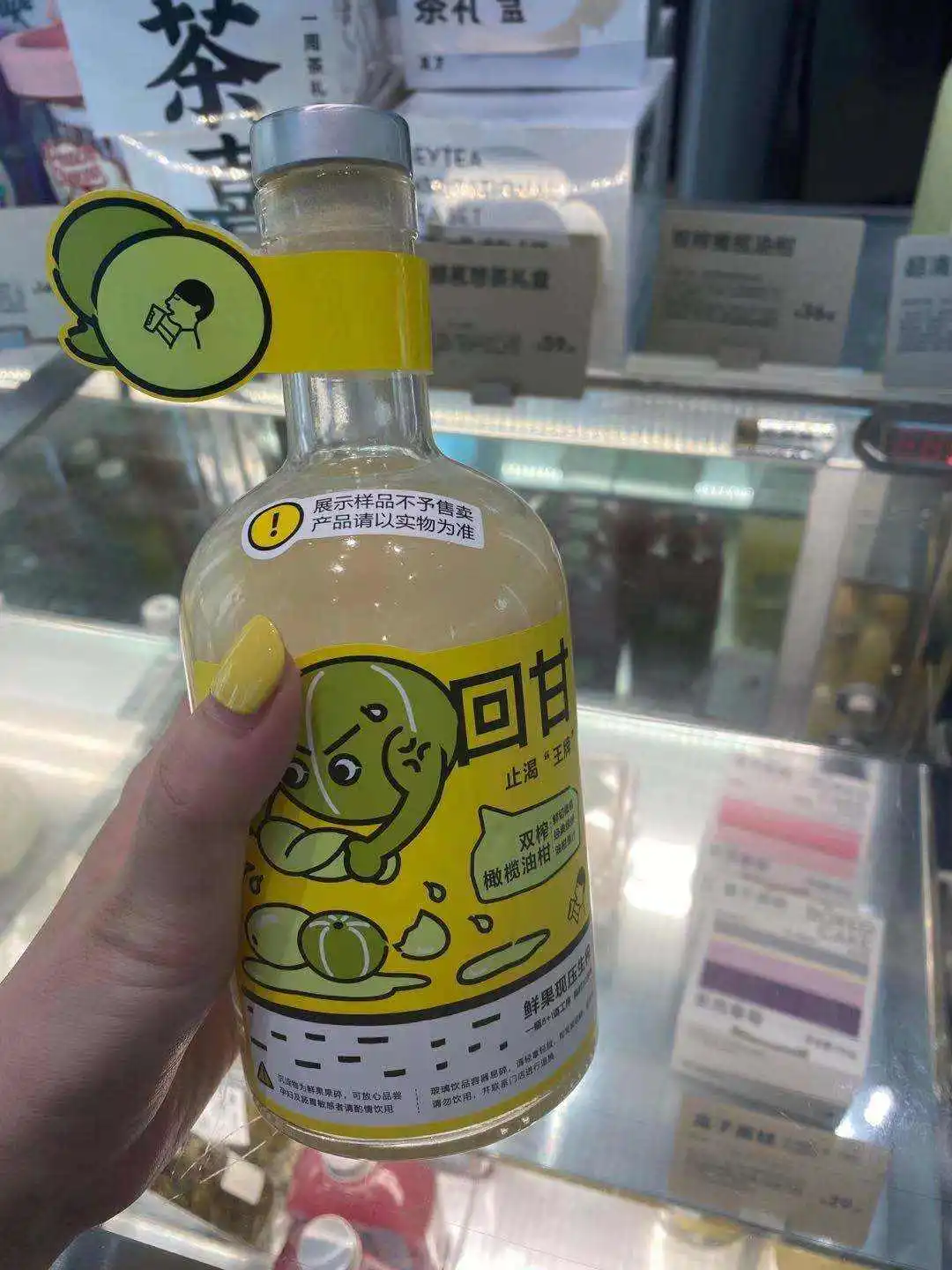 當陳女士在影院用吸管喝了一口雙榨楊桃油柑後,厚重的油脂感充滿了整個口腔。在意識到飲品口味“不正常”後,陳女士在飲品的瓶身上看到了“樣品”的字樣。