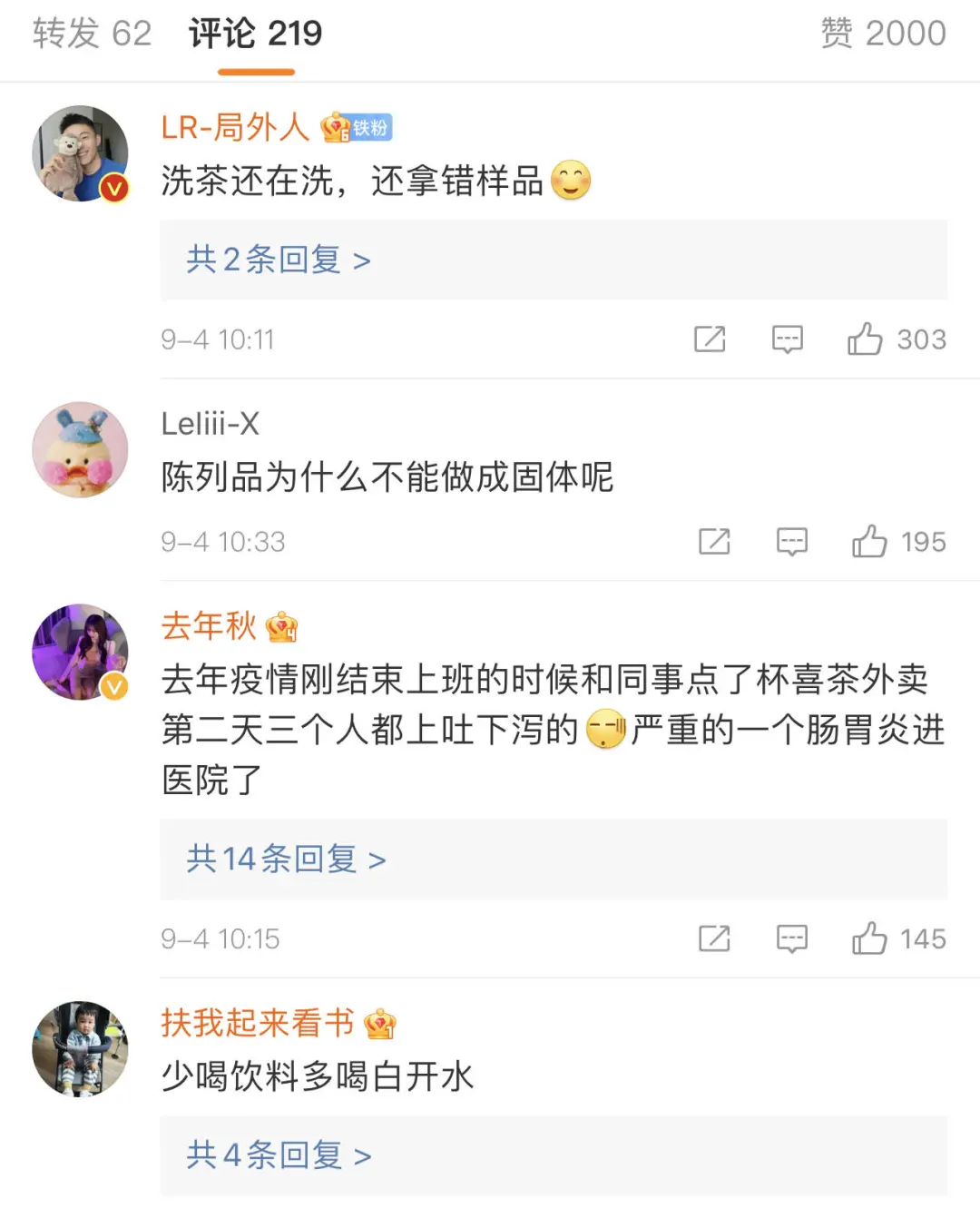 在該條新聞下方,也有網友稱,“喜茶還砸洗,還拿錯樣品”“陳列品為什麼不能做成固體呢”等對喜茶的質疑聲還在繼續。