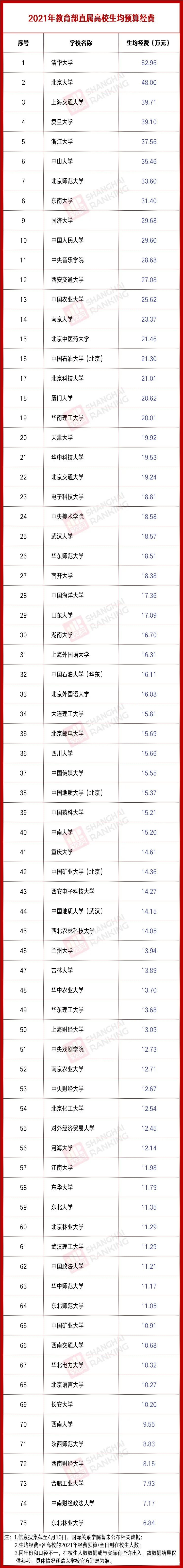 很顯然,這一項數據才能真正體現一個大學的富裕程度。因為有的學校經費支出高,但是學校人數也多,平均下來數量也就並不多。