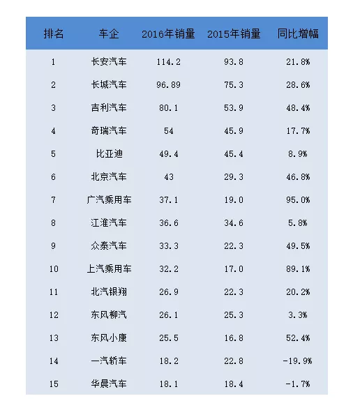 圖3:2015-2016國內自主品牌銷量排行榜(萬輛),資料來源:乘聯會,公司公告