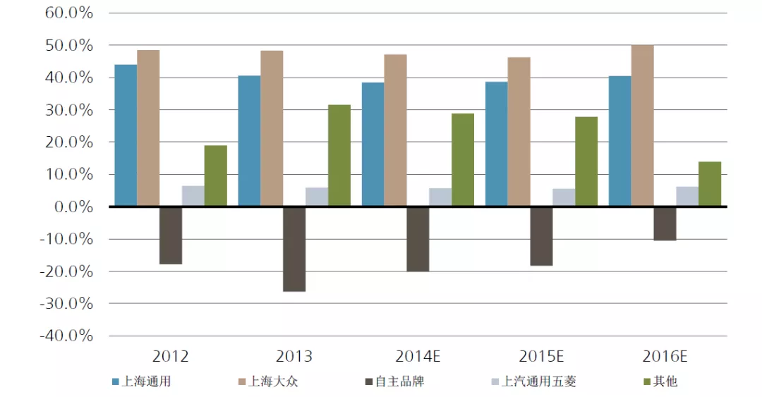 圖5:2012-2016上汽集團的歷年淨利潤拆分,資料來源:公司數據,瑞銀證券