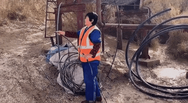 來自陝西的謝阿姨在這裏守護了三年,每天為沙漠植被澆水、管理水井房,日復一日地做着相同的工作,非常辛苦。