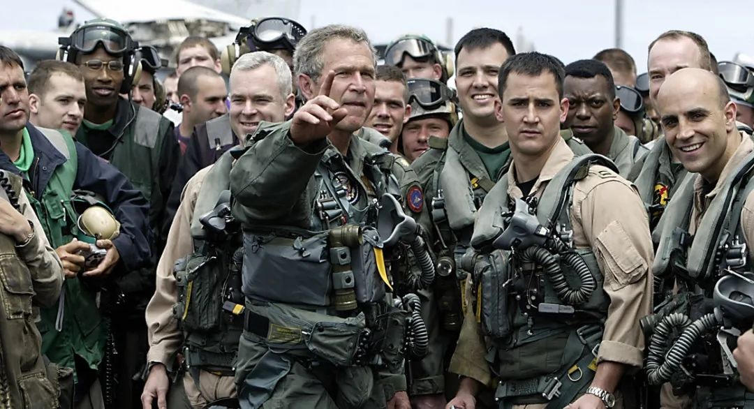 薩達姆手握步槍檢閲浩蕩的伊拉克大軍時,不也是在中東那疙瘩橫刀立馬嗎?可最後還是難逃悲催的命運。2003年3月17日,布什於電視講話中對伊拉克發出48小時的最後通牒,要求薩達姆和他的兒子們在此訊息發佈的48小時之內離開伊拉克,否則即將開戰。