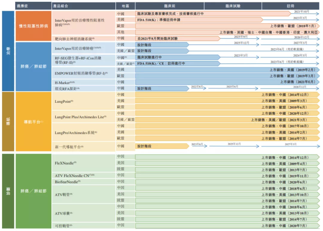 根據弗若斯特沙利文的資料,公司的LungPoint ATV系統(在中國內地和中國內地以外亦分別被稱為LungPro系統和Archimedes系統)(即“Archimedes系統”)是全球唯一一個全肺抵達增強現實實時圖像導航的導航系統。與公司的肺部導航系統全面整合,堃博醫療提供了行業領先的介入診療產品的全面產品組合。