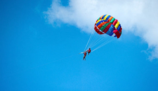 上次在一個綜藝節目裏看到有人玩了,看上去也不是那麼可怕嘛。被降落傘託舉到空中,迎着海風,一定很爽。