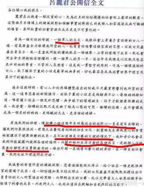 呂麗君眼見就要失寵,不和大劉商量,就在網上發佈了一篇公開信。