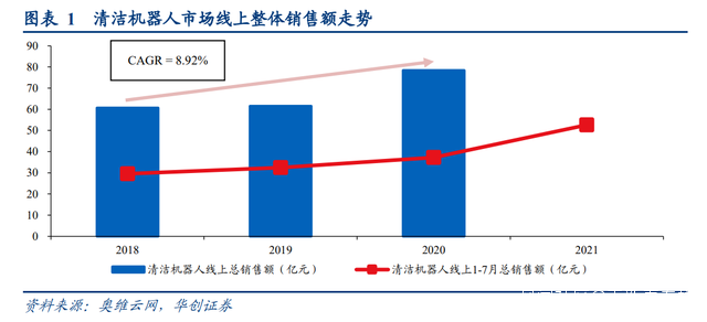 而根據奧維雲網的數據來看, 2018-2020年CAGR為8.92%,2021年1-7月線上總銷售額為52.62億元,好於往年同期(2020年1-7月線上總銷售額37.28 億元),2021年有望創歷史新高。
