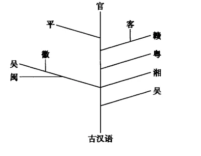 古語有説:“十里不同音。”一句話已體現了我國方言種類繁多、系統複雜的特徵。根據《中國語言地圖集》(2012)的分類,漢語方言(不包括少數民族語系)可以在第一層次上劃分為十大方言,即官話、晉語、吳語、徽語、閩語、粵語、湘語、贛語、客家話和平話。這十大方言形成的歷史不一樣,大致沿着下圖的脈絡和時間演化。