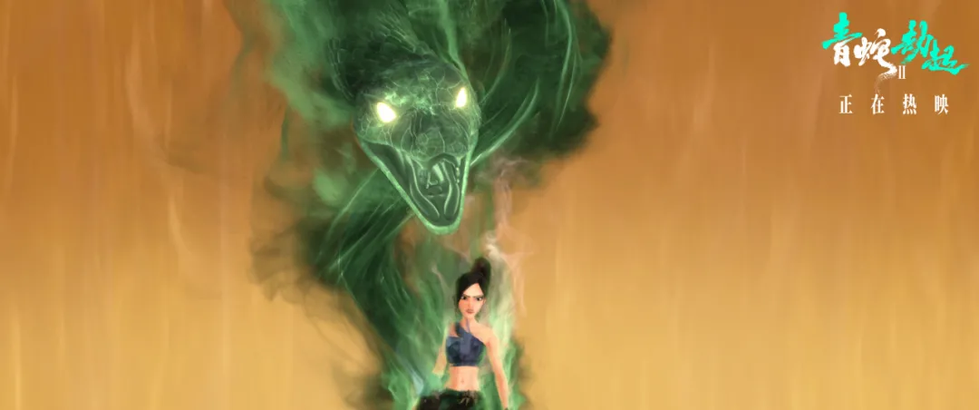 旁白:《白蛇2:青蛇劫起》用現代的國漫形象和故事新編,對傳統中國神話故事《白蛇傳》進行了再演繹,劇中小白被法海鎮壓在雷鋒塔後,小青為救小白進入修羅幻境,經歷了一場充滿情與劫的冒險。